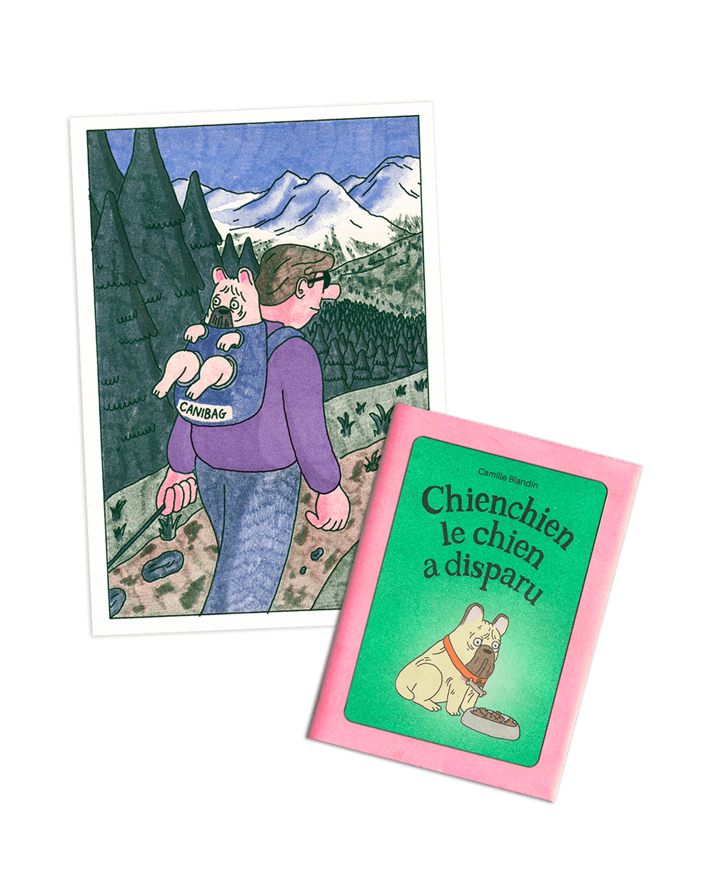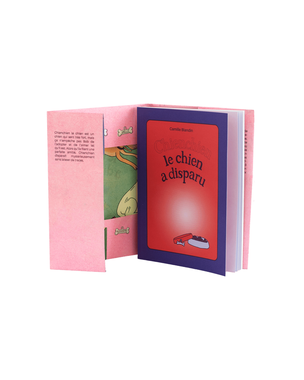 Livre écrit et illustré par Camille Blandin, Chienchien le chien a disparu a été imprimé sur les presses offset de JF Impression à Montpellier et en risographie chez Ultraviolet à Marseille à 400 exemplaires au format 13x18 cm. Une réédition de 400 exemplaires voit le jour en décembre 2024. La couverture est imprimée sur du papier Coral Book 300g et les pages intérieures sur du Coral Book 120g. La jaquette est imprimée sur Munken Pure 120g.